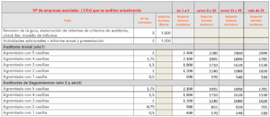 El importe de los trabajos previos de revisión (los dos primeros puntos de este cuadro) los asume el Gremio. El importe a asumir por los agremiados dependerá de la cantidad de empresas a la que se les certifique y del número de casillas que tengan.